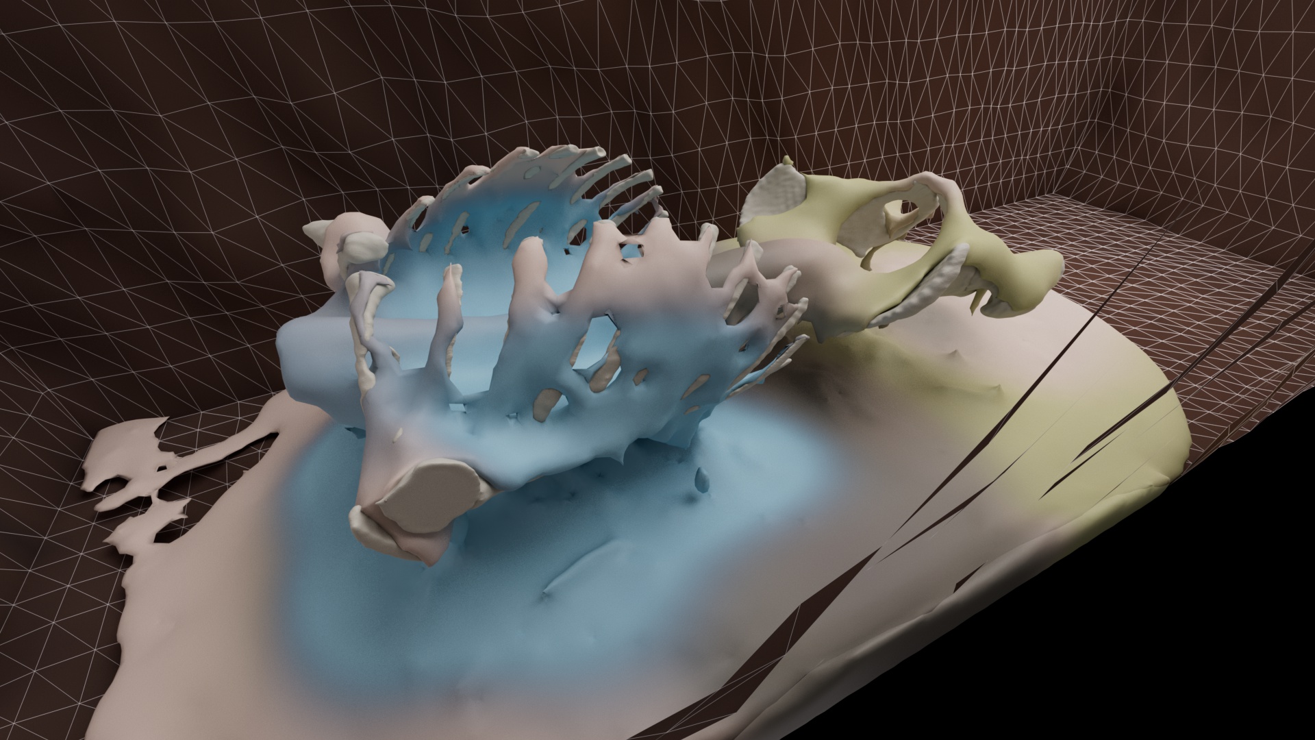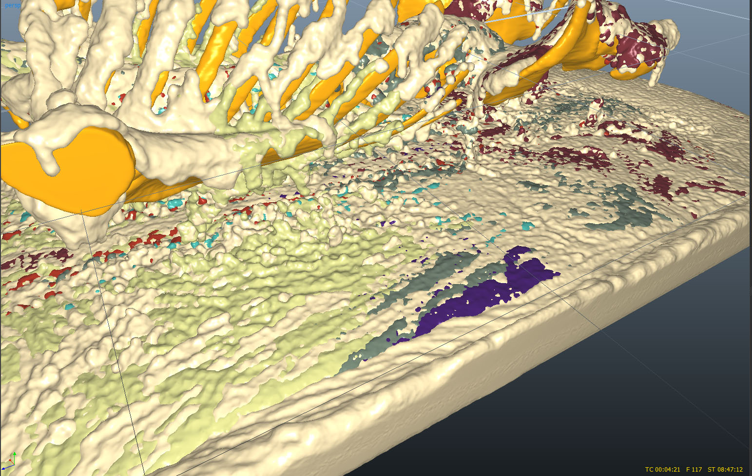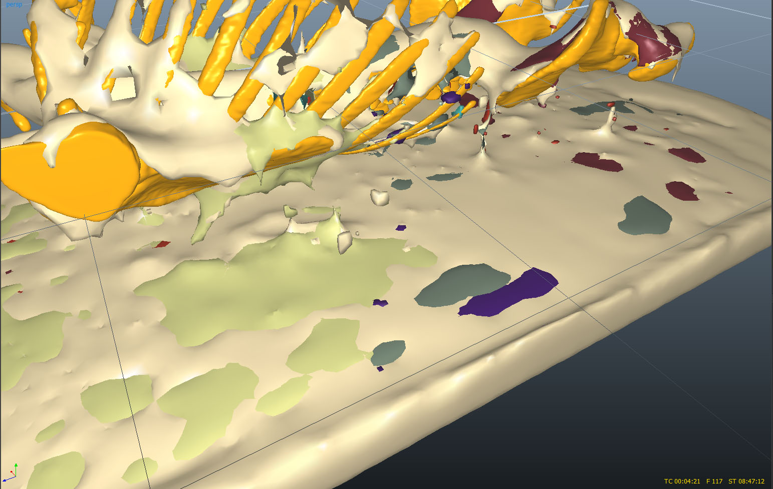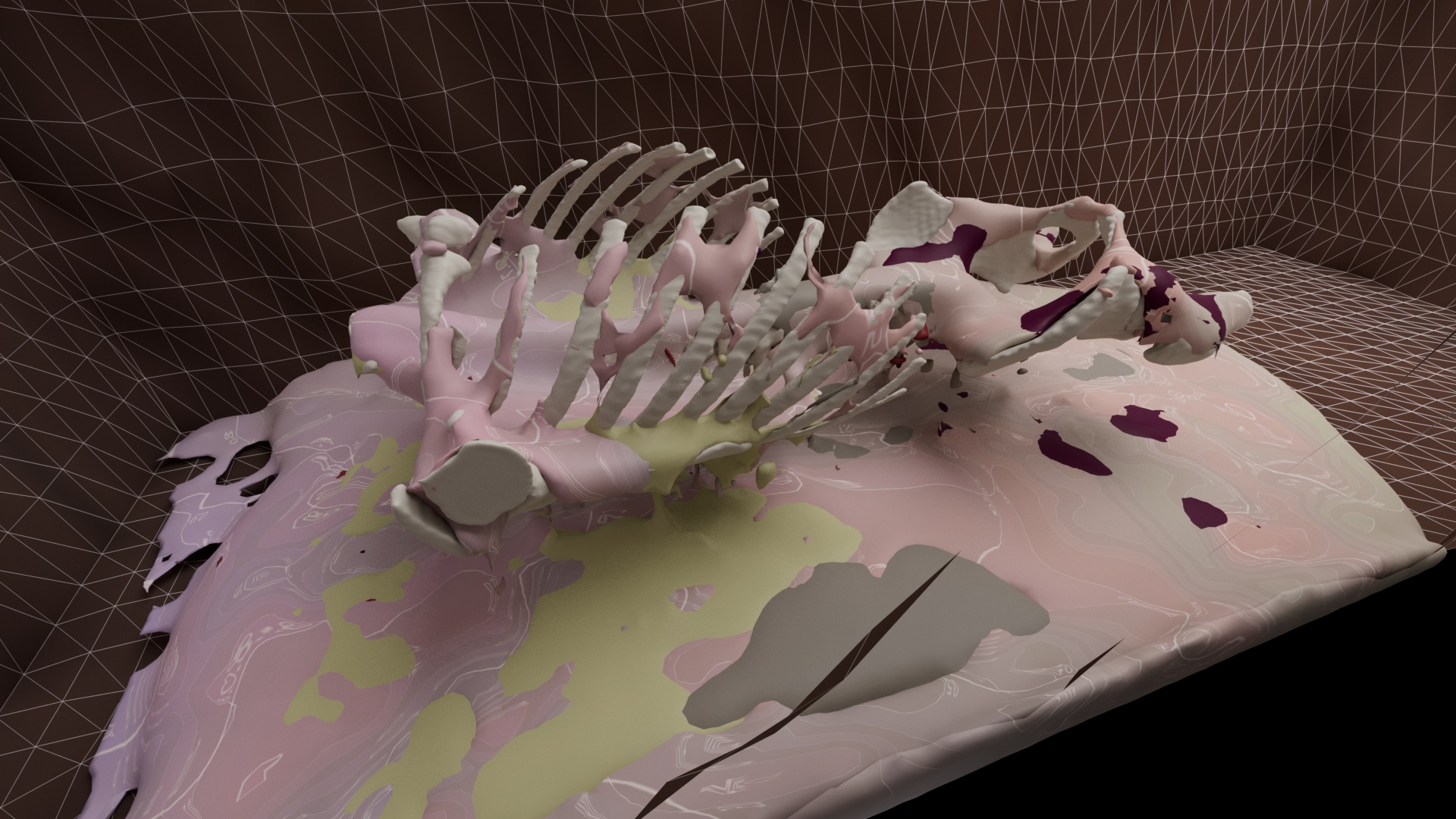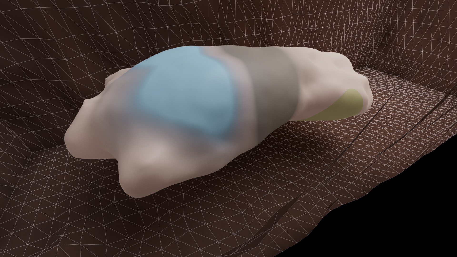 Up until now I had only modelled the body as one uniform tissue – no internal organs or tissues such as muscle, blood or fat. I needed to know if I could make different body parts decompose, interact and mix together. All do all this while inside another tissue – the overall body surface.