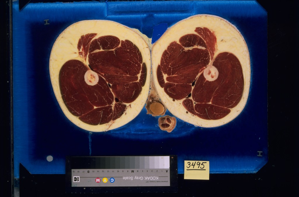 The Visible Human Project animates a digital version of a dead person’s body. My project animates a digital version of my live body as though it is dead. Although I can stop living and allow a digital copy to live for me, I cannot stop my encroaching death and allow a digital version to die for me. This process will always result in at least two dead bodies, both of them in infinite but separate processes of decay and transformation.