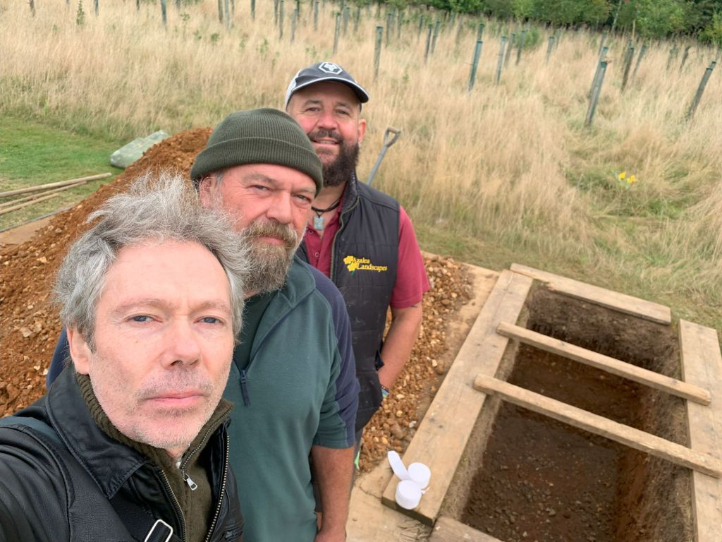 SEPT 2024: Henley Woodland Burial Ground is a natural or green burial site set up by James Leedam. I had contacted James and he suggested that this site might have the right soil conditions for my project. He put me in touch with the site’s custodian Phil Pawley-Kean. I asked Phil if I could see a grave hole and he gave me a date when they were due to prepare one for a funeral that afternoon.