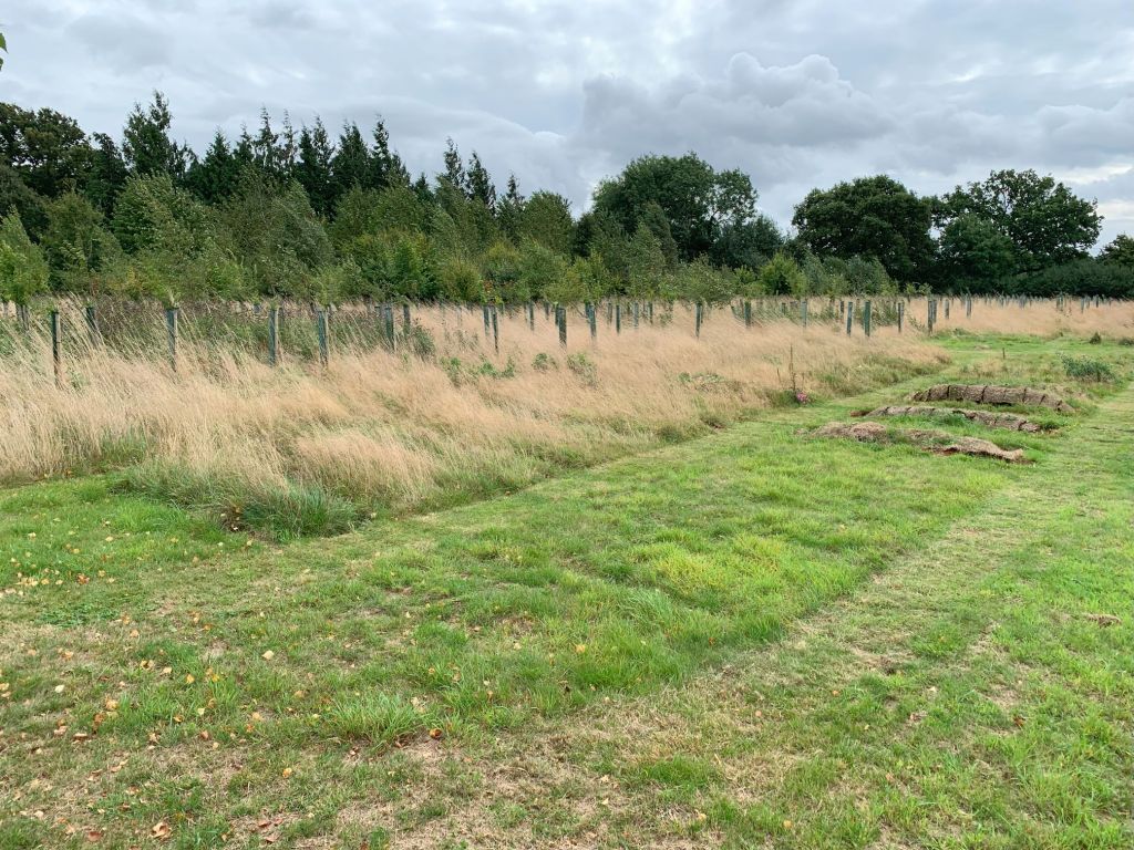 Phil gives me an introduction to the site which was set up as a burial ground 13 years ago. From woodland to meadow, it stretches across 40 acres, with trees gradually being planted by Phil over the graves until eventually they will fill the whole site – probably tens of thousands of graves. At one point Phil described himself as a ‘planter of people’ – the bodies being interred first and then the trees and the grass on top. This struck me as an evocative way to think about it. Although the bodies ‘planted’ here will not grow like the trees into people, one could think of them as being deliberately placed like pots from which new life will sprout.